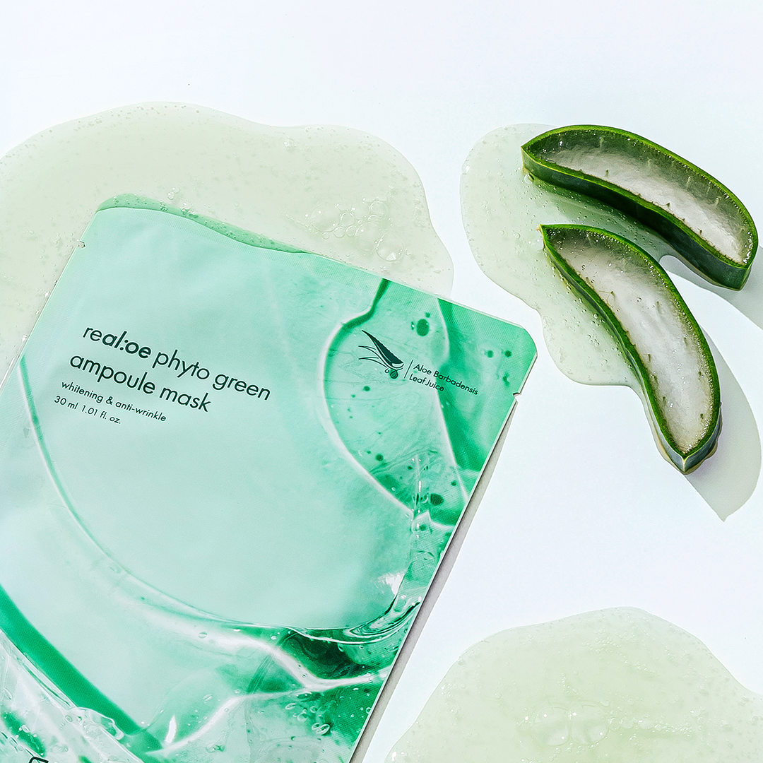 • Dòng mặt nạ CURE Real:oe Phyto Green Ampoule Mask ứng dụng công nghệ chiết xuất lô hội đặc biệt: