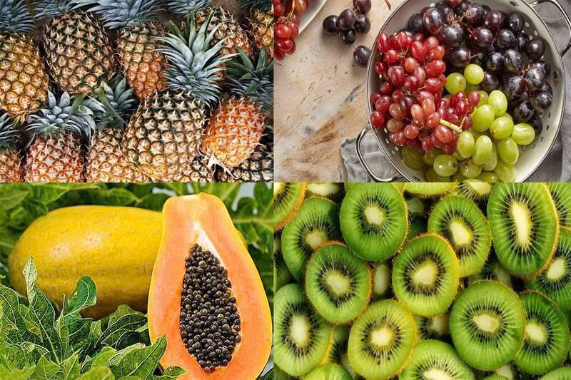 • Trái cây tươi: dứa, đu đủ, kiwi